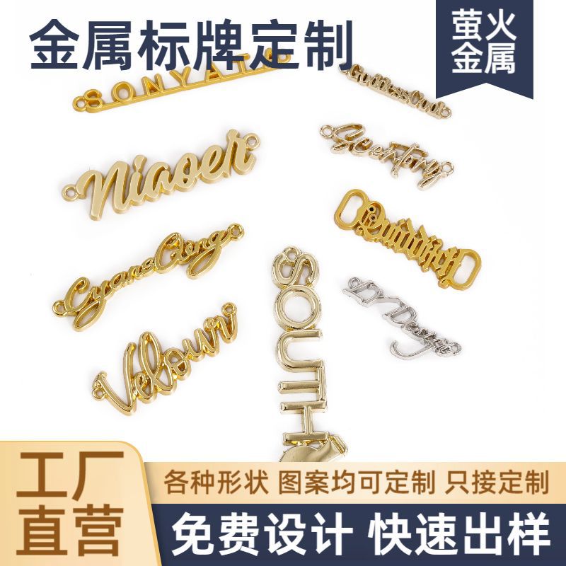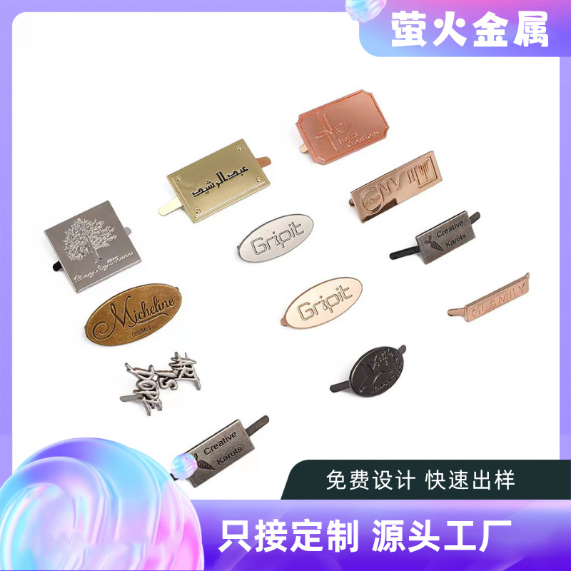 厂家生产锌合金压铸标牌U型插脚金属标识箱包服装五金铭牌logo