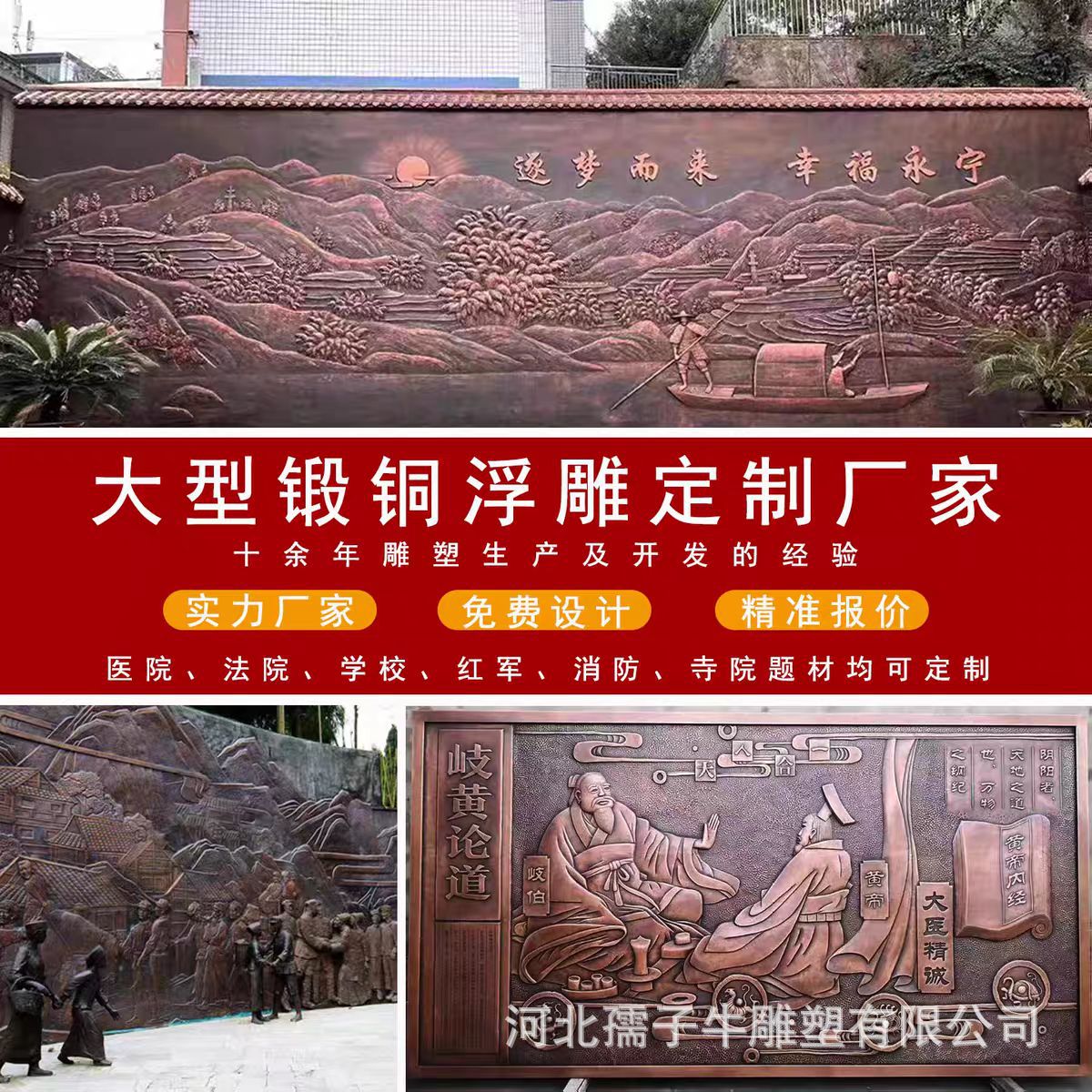 大型文化墙人物浮雕 装饰工程 风景锻铜铸铜雕塑设计定制加工浮雕