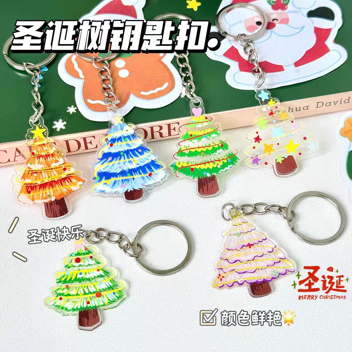 跨境圣诞树钥匙扣亚克力挂饰钥匙链学生圣诞节文具奖励小礼品挂件