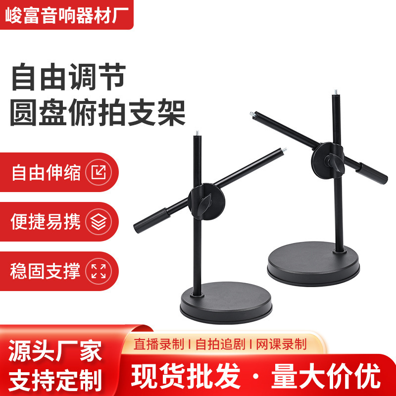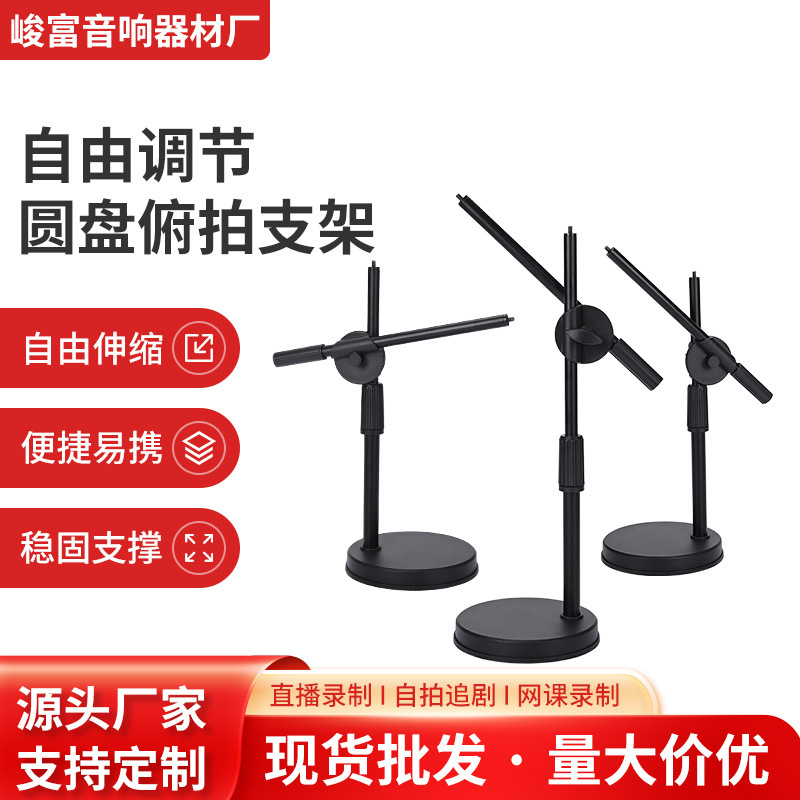 桌面手机支架可升降网课直播录音会议俯拍方盘圆盘麦克风支架批发