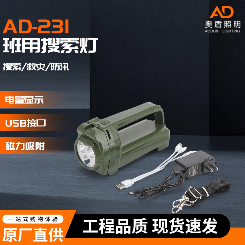班用探照灯AD-231磁力吸附应急手摇发电强光班用搜索灯带电量显示