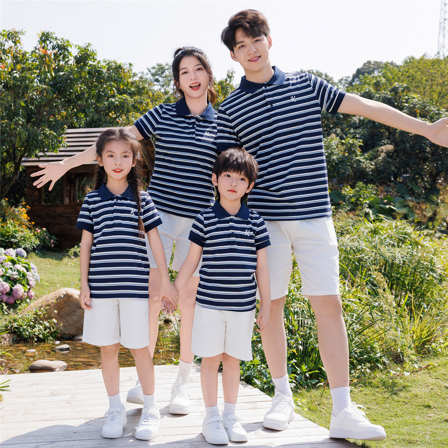 亲子装夏季新款短袖polo衫简约休闲百搭一家三口家庭装儿童班服