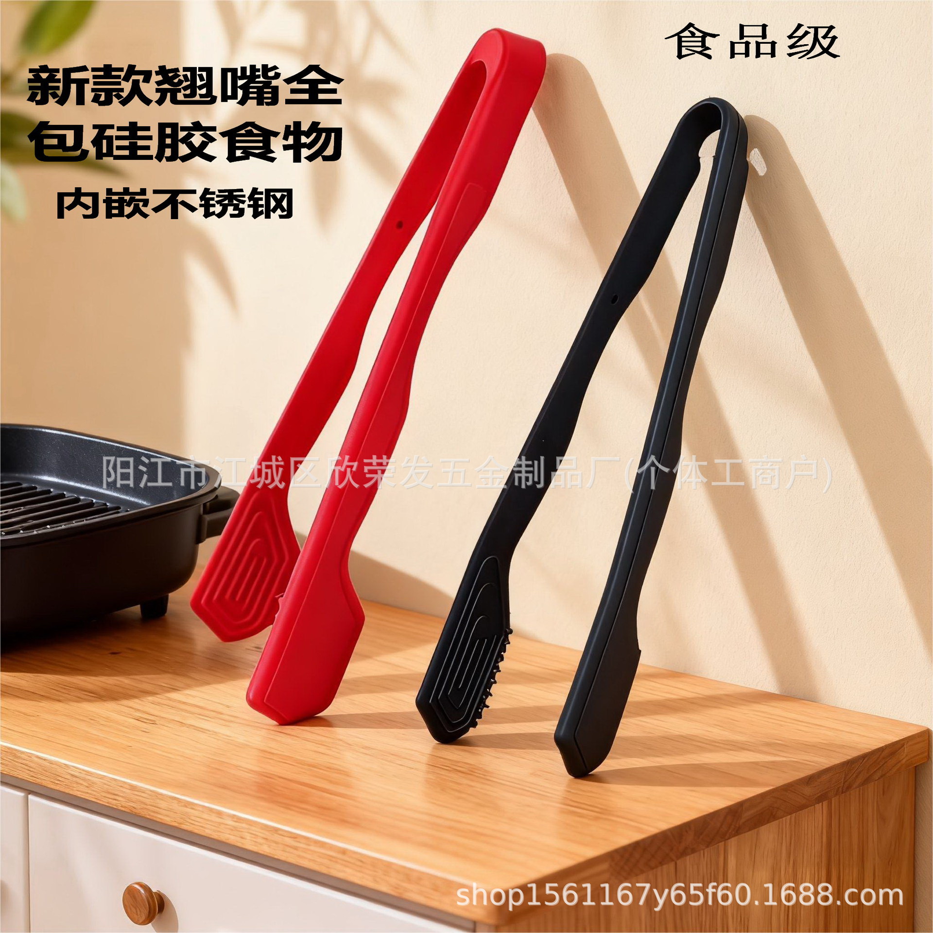 耐高温食品级网红橙学同款翘嘴全包硅胶食物夹烘焙烧烤夹食品夹