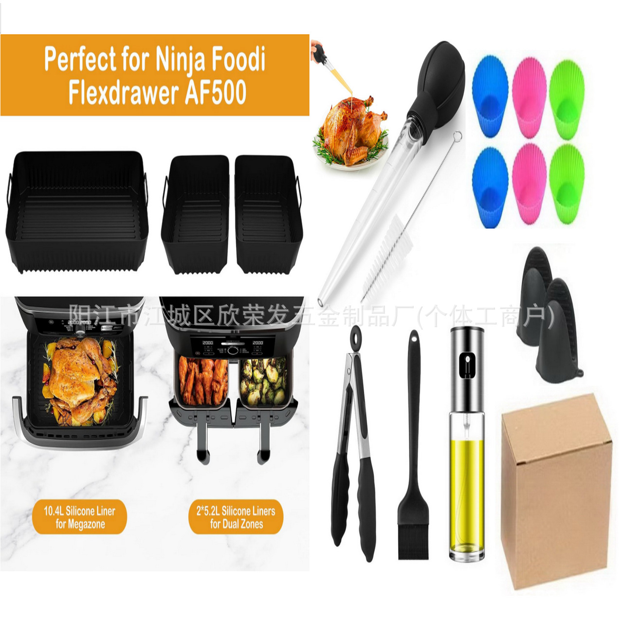 亚马逊新款空气炸锅配件硅胶蛋糕模具火鸡吸油泵烤架食物夹油壶