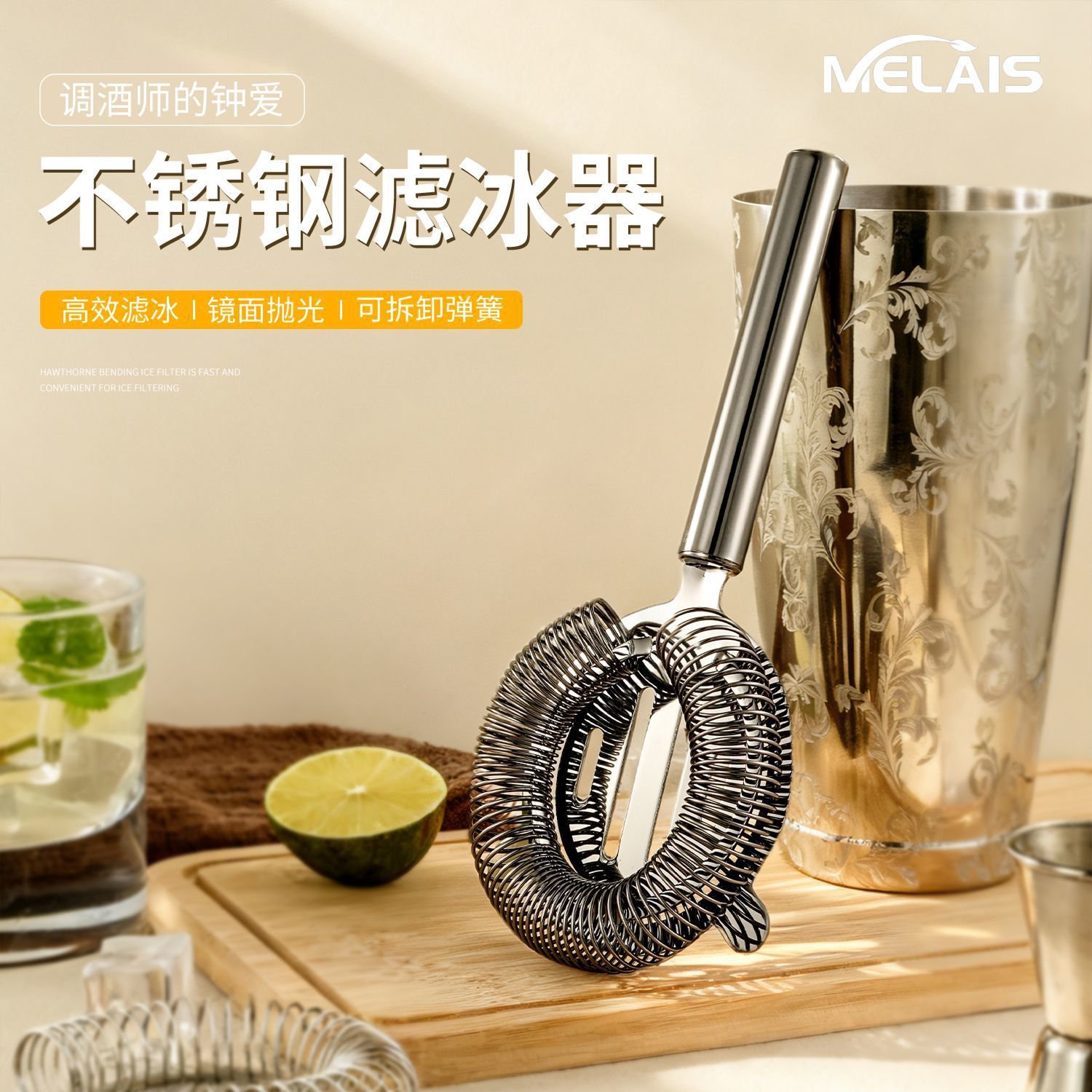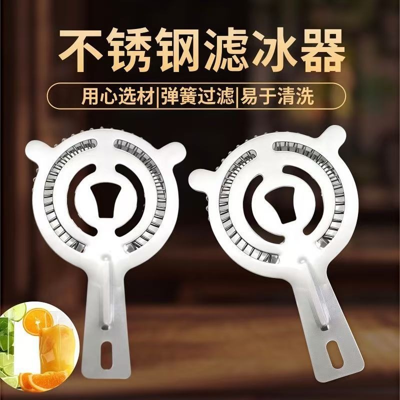 不锈钢调酒滤冰器双耳挡冰过滤器酒吧鸡尾酒隔冰器酒吧调酒工具