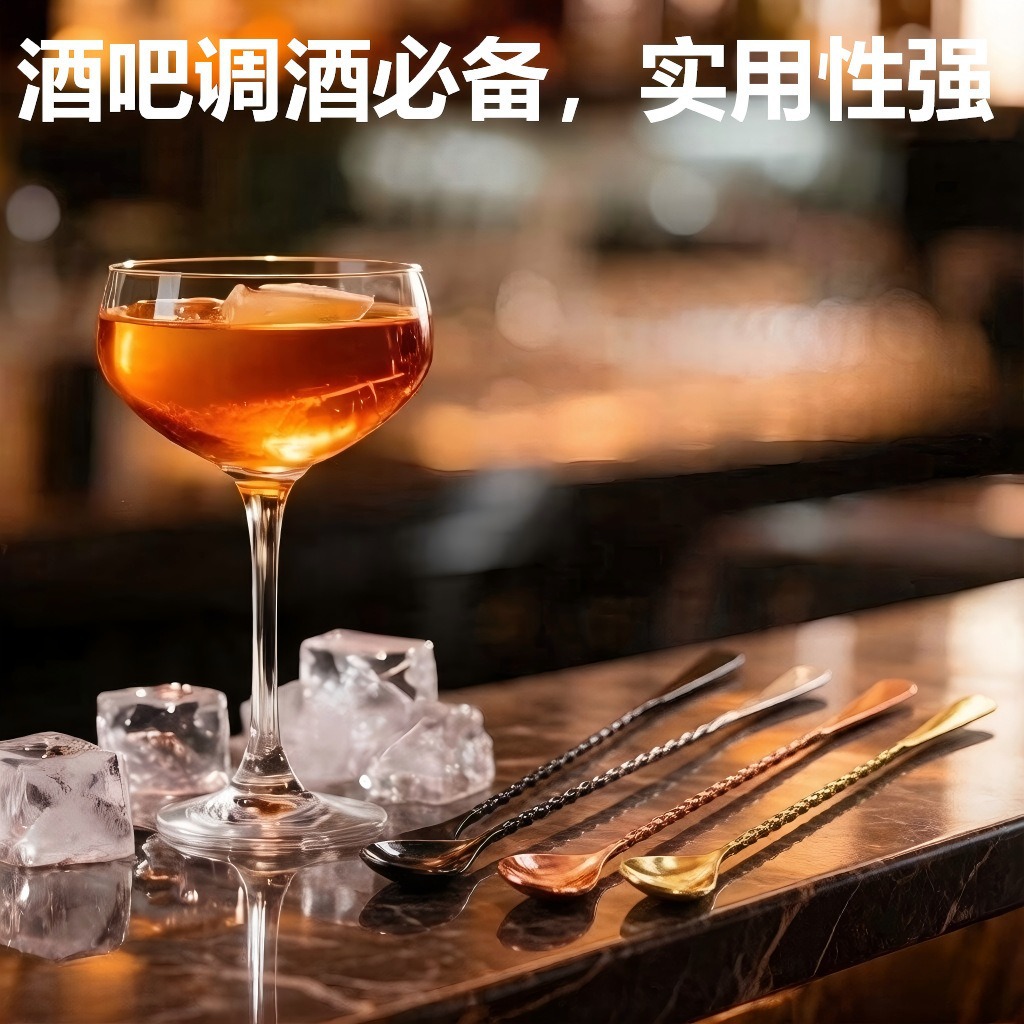 厂家直销不锈钢带滴更鸡尾酒调酒勺吧更奶茶咖啡搅拌勺批发