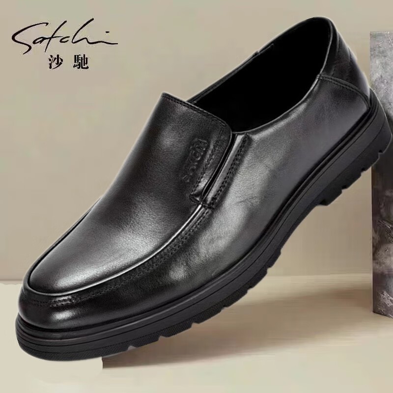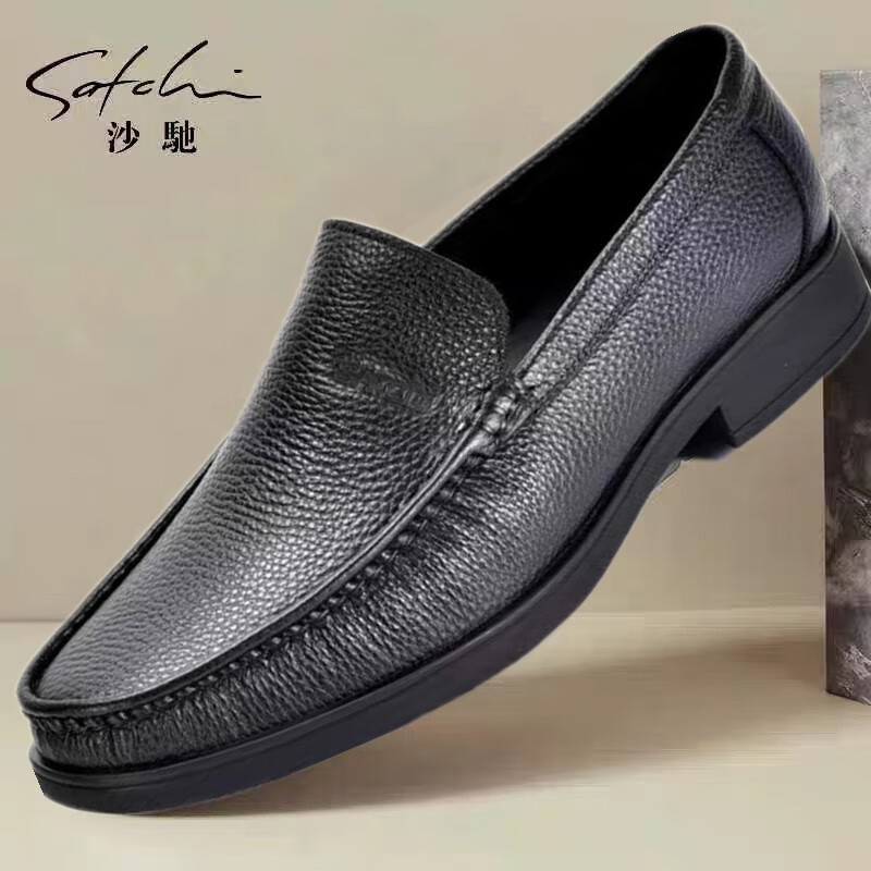 沙驰男鞋2025新款套脚商务休闲皮鞋英伦透气软皮软底鞋通勤百搭男