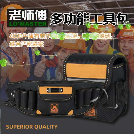 老师傅 现货加厚维修电工适用工具包腰包 牛津布木工工具袋