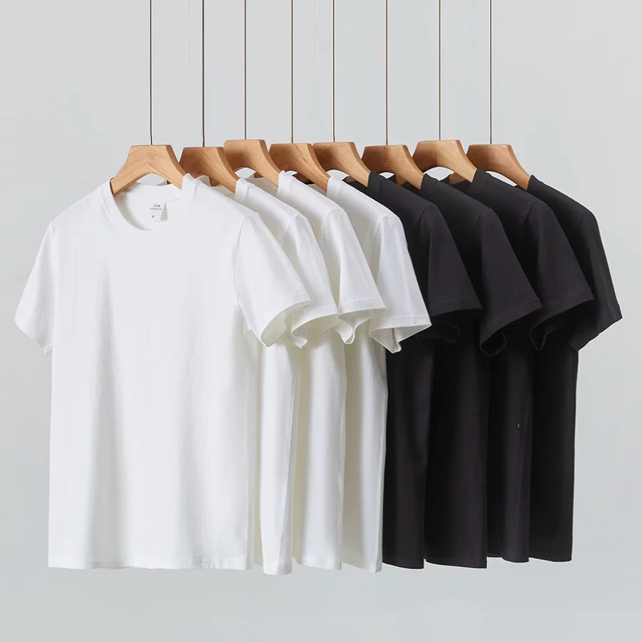 重磅短袖T恤男士夏季大码宽松纯棉半袖圆领纯白色打底衫厂家批发