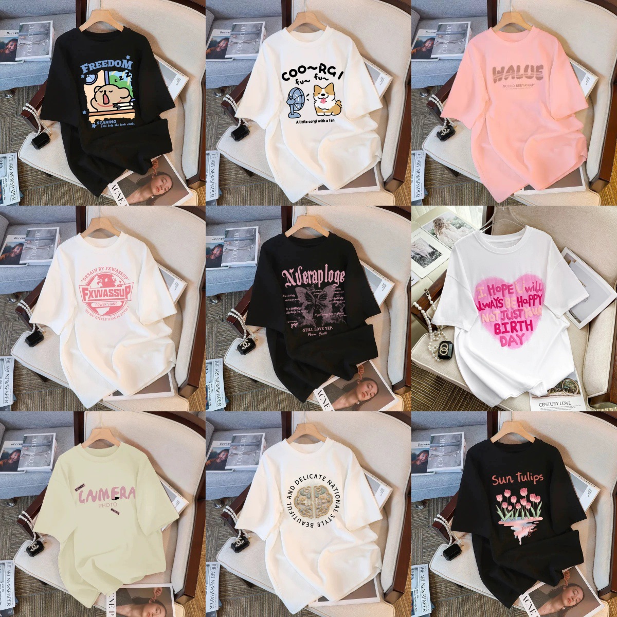 2元女装地摊货源批发夏季新款短袖t恤女宽松圆领印花上衣9.9包邮