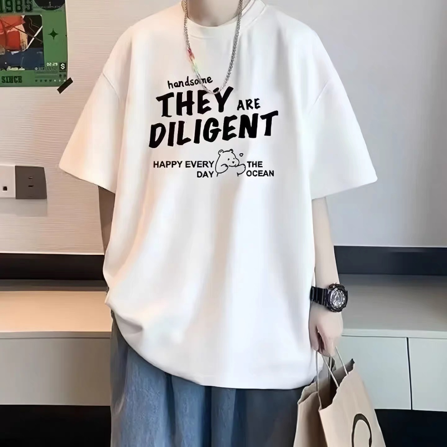 重磅纯棉短袖T恤男装夏季2026新款美式大码宽松潮款圆领印花上衣