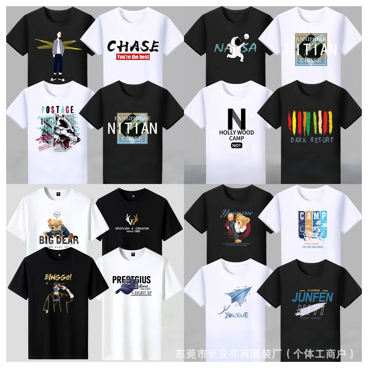 夏季男装短袖大码宽松潮款美式重磅圆领印花T恤跑江湖地摊货源批