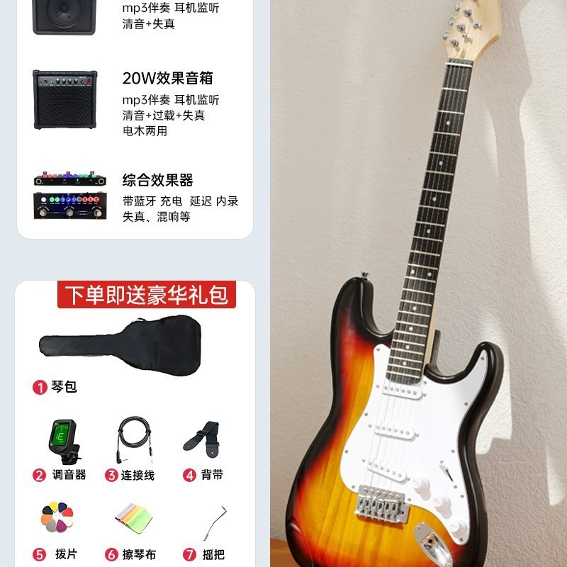 电吉他新手单单单双级ST摇滚套餐初学入门带音响单摇