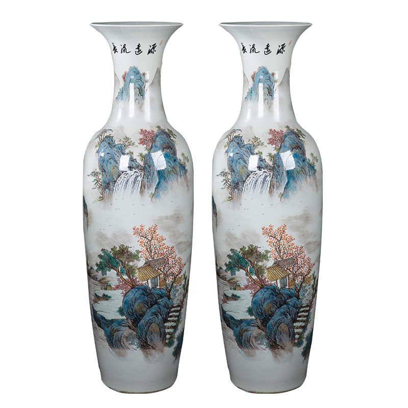 景德镇陶瓷器手绘山水落地大花瓶装饰摆件客厅酒店公司大厅工艺品