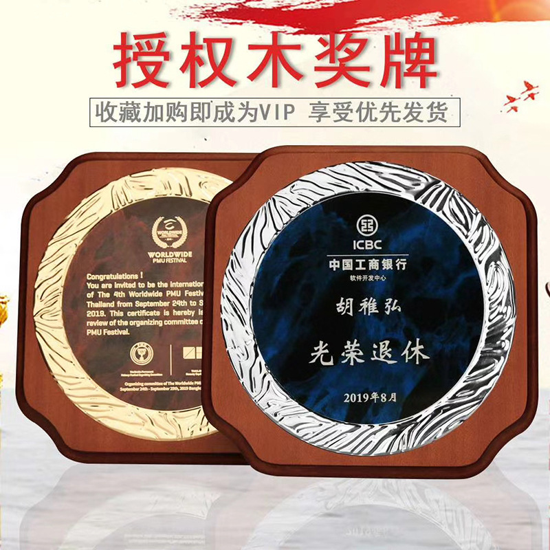 荣誉金箔奖牌制作木质授权牌企业荣誉奖牌企业单位文化礼品颁奖