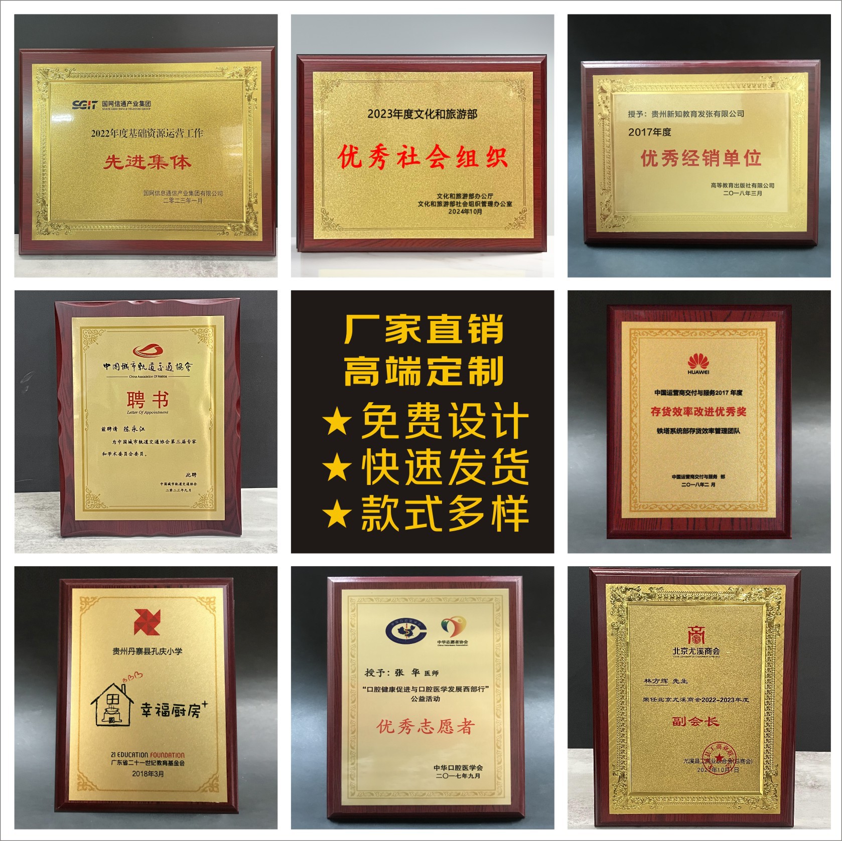 金箔奖牌制作木质授权牌企业荣誉金属奖牌木质荣誉金箔奖牌批发
