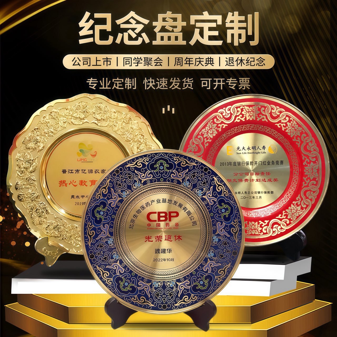 纪念奖盘 制作奖杯纯铜盘年会纪念品公司周年庆奖牌奖章纪念盘