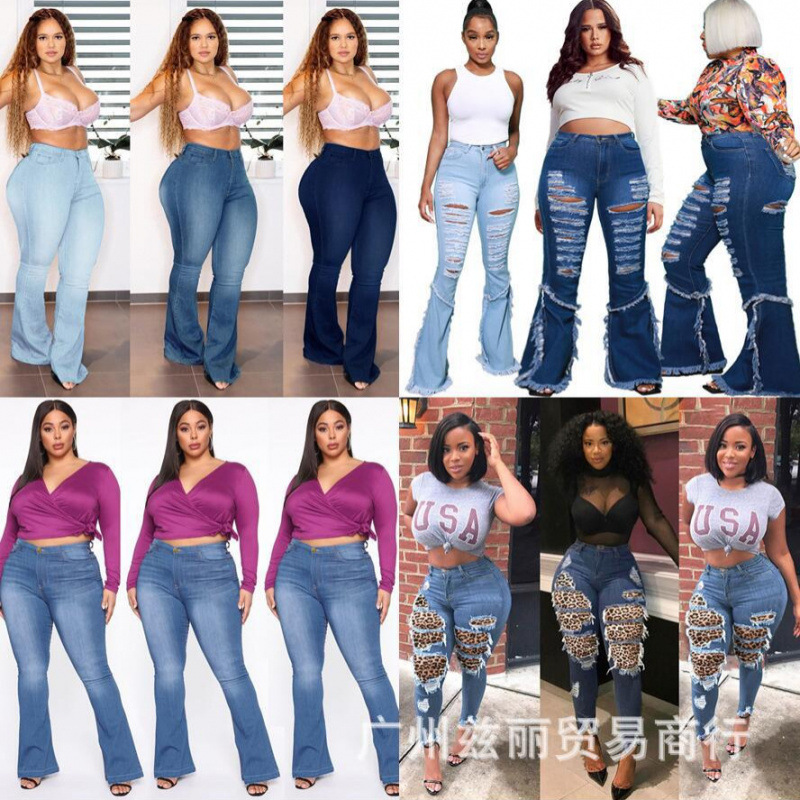 欧美Women's jeans时尚修身弹力破洞牛仔小脚裤女大码工厂批发