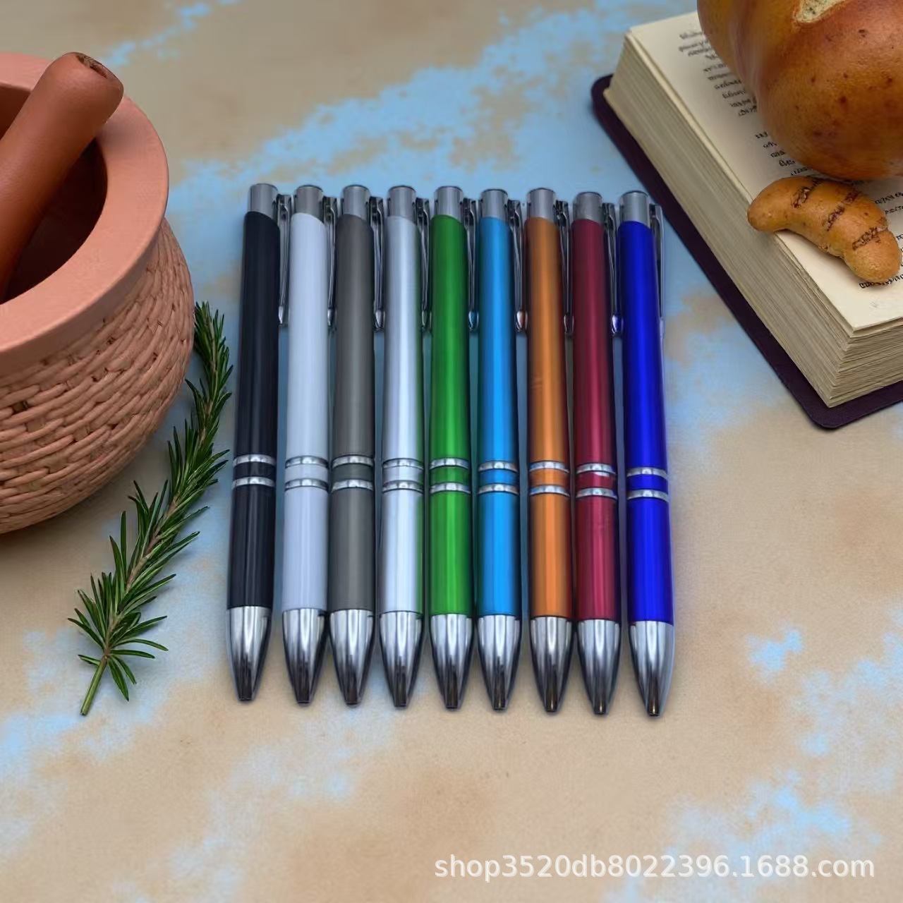创意按动喷漆圆珠笔两个圈圈斜口笔镭射logo广告笔学生文具礼品笔