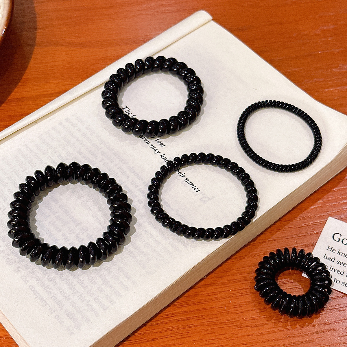 5.5cm高质量黑色透明电话线韩版束发饰品发圈头绳皮筋高弹力手环