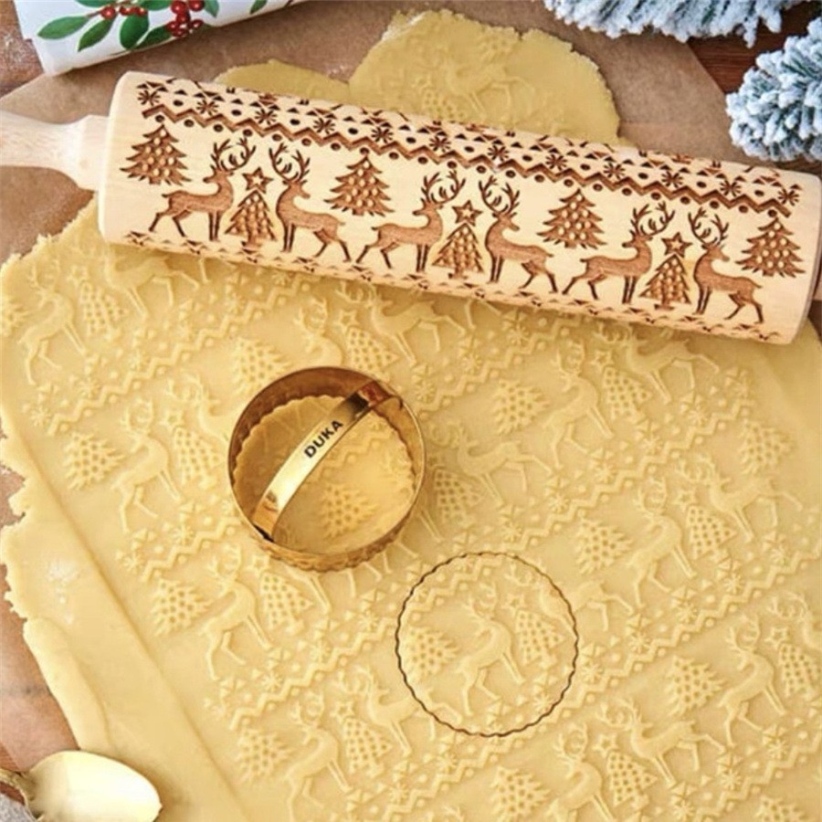 印花擀面杖 松果动物宫廷窗花雕木质压花擀面杖饼干diy烘焙工具