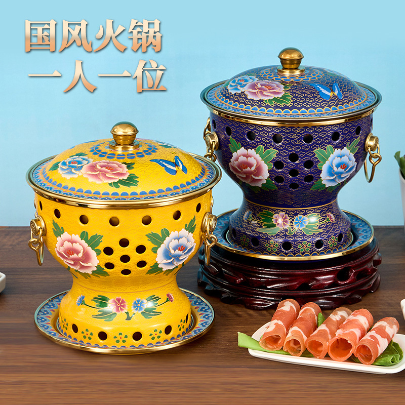 景泰蓝铜火锅加厚酒精铜锅酒精炉家用小型一人单人纯铜火锅小火锅