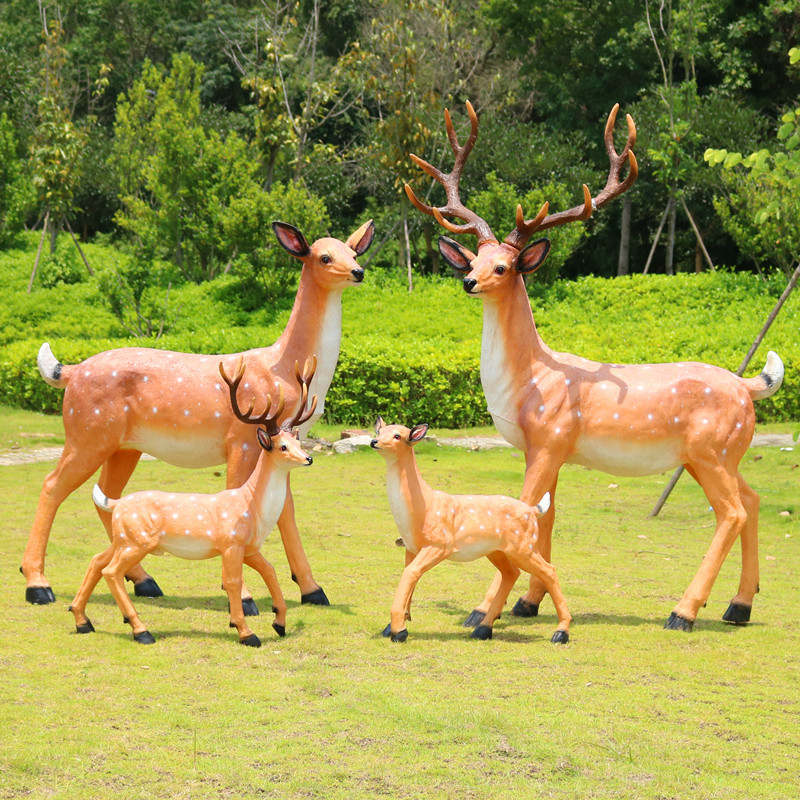 园林景观仿真动物模型梅花鹿雕塑庭院公园景区草坪玻璃钢麋鹿摆件