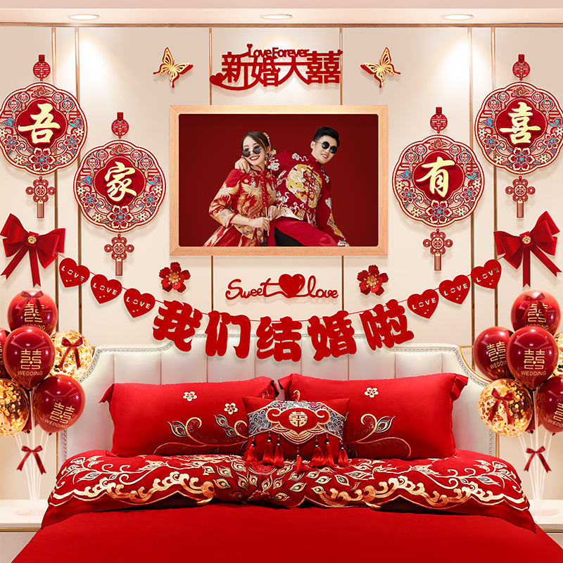 婚房布置套装新房卧室装饰婚礼男方主卧床头拉花全套结婚用品大全
