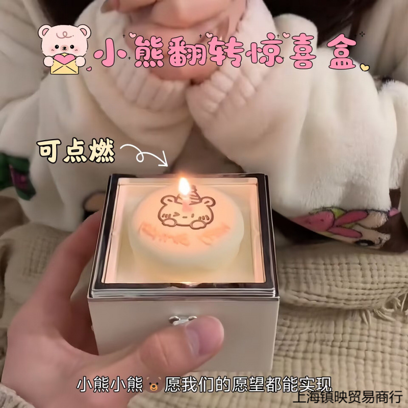 小熊蛋糕翻转惊喜戒指盒生日女生送女朋友老婆表白量大可优惠代发