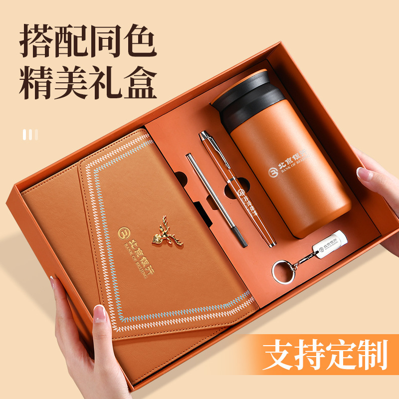 A5高端精致加厚皮质折叠记事本商务伴手礼保温杯u盘礼盒可印logo