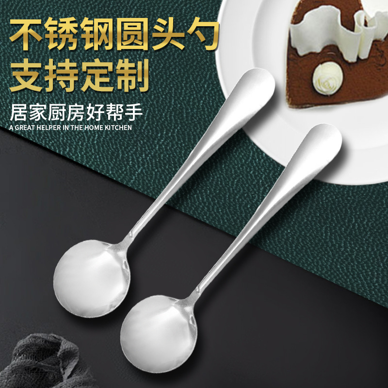ins不锈钢网红圆头勺子家用汤匙韩式甜品大圆勺创意可爱吃饭调羹