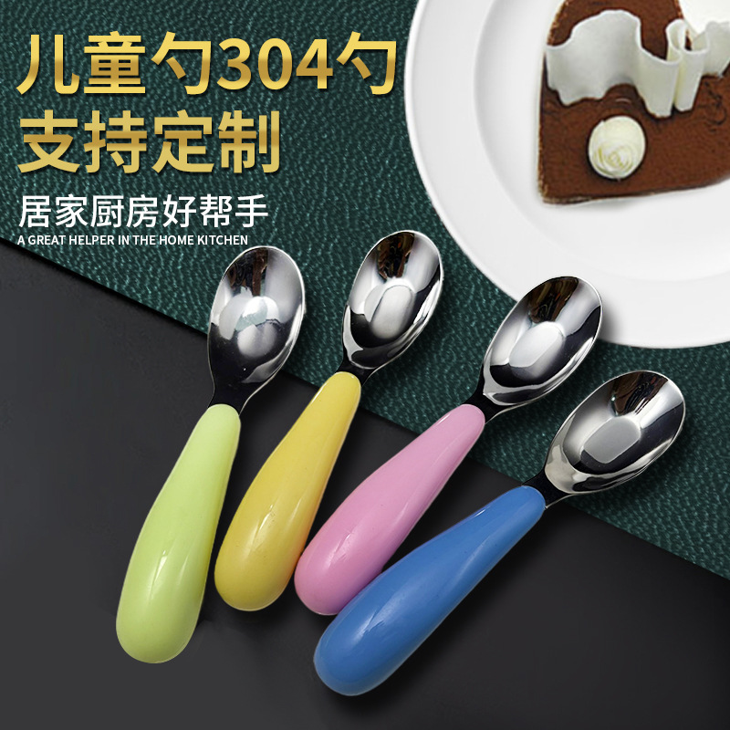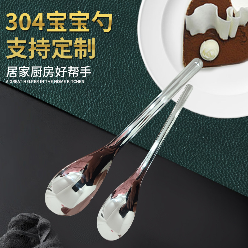 厂家供应304不锈钢儿童勺 儿童吃饭勺餐具加厚长柄不锈钢勺喂饭