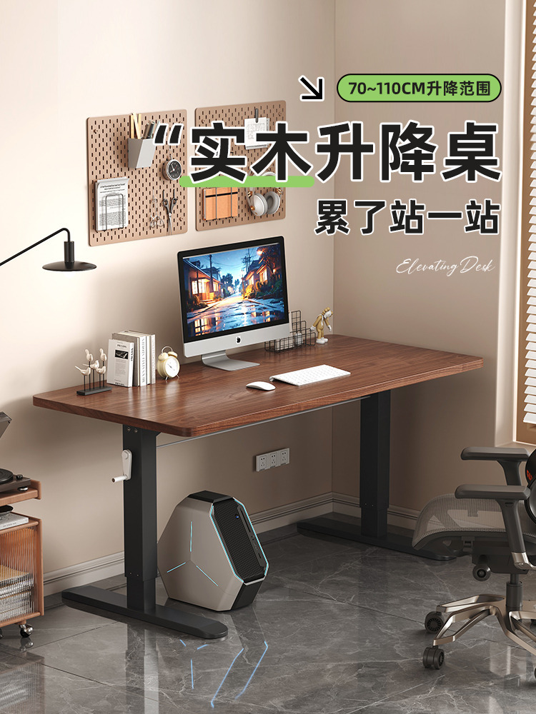 升降桌子电脑桌台式卧室实木书桌学生家用写字桌儿童学习桌办公桌