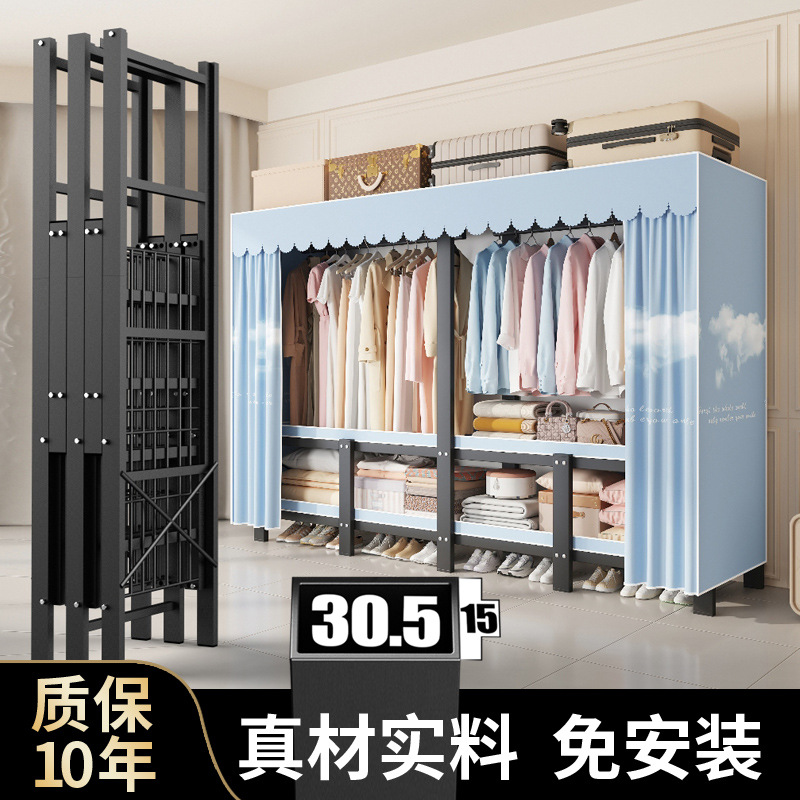 小户型免安装折叠布衣柜家用卧室出租房用钢架结实耐用收纳挂衣橱