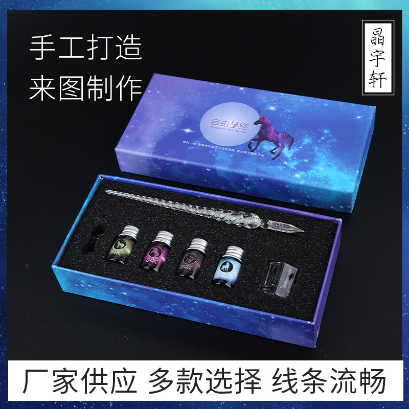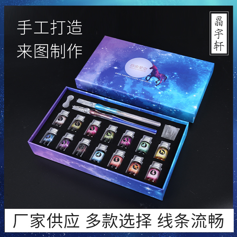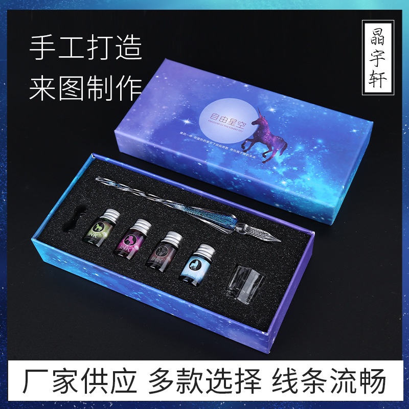 定制银箔笔蘸水笔星空彩墨笔套装网红玻璃笔金粉墨水礼盒学生礼品