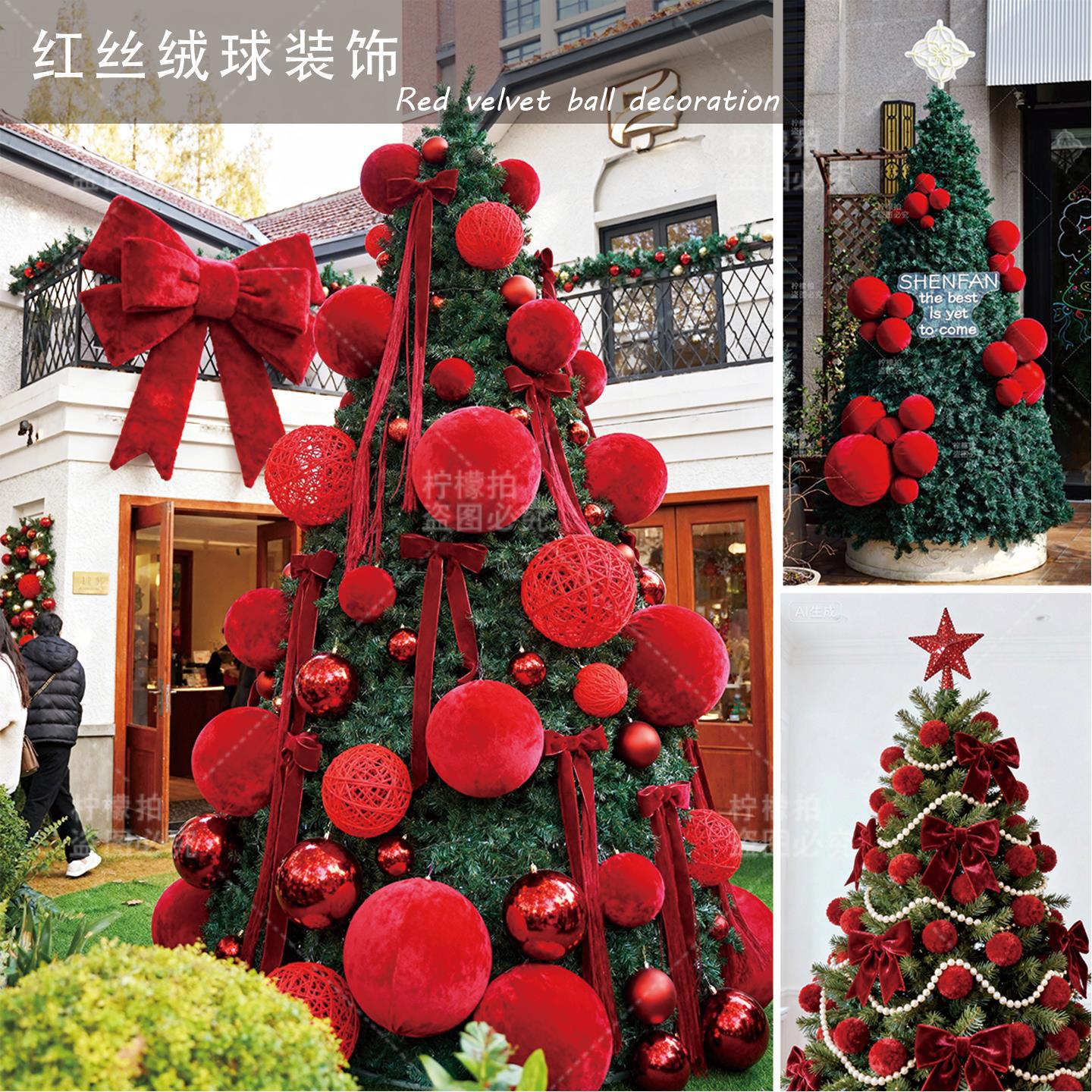 圣诞春节红丝绒球元旦冬日装饰布置挂件网红拍照打卡道具陈列美