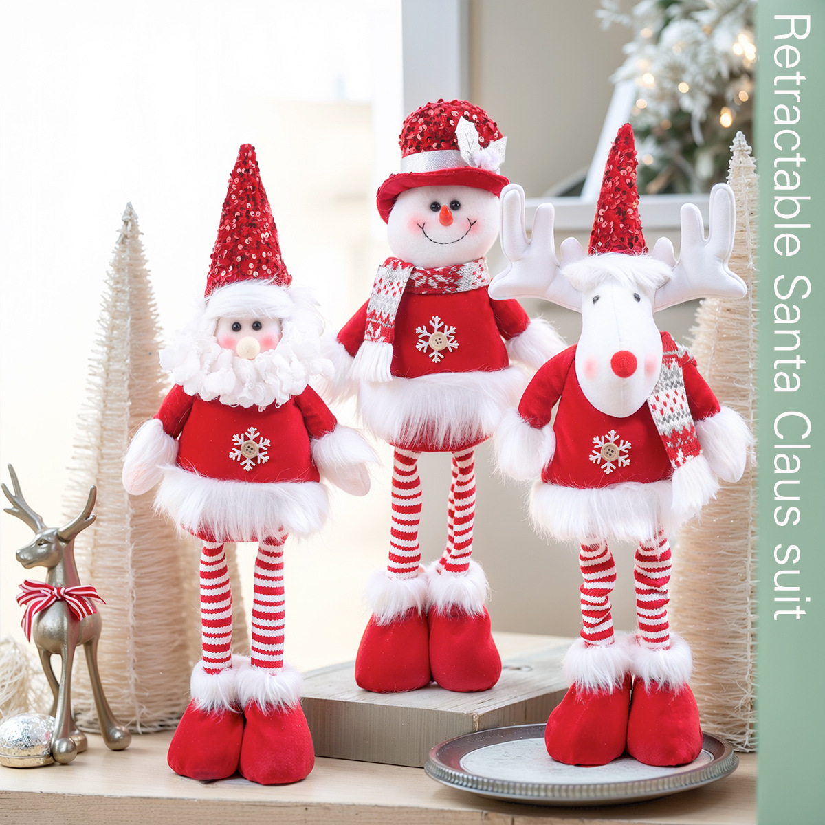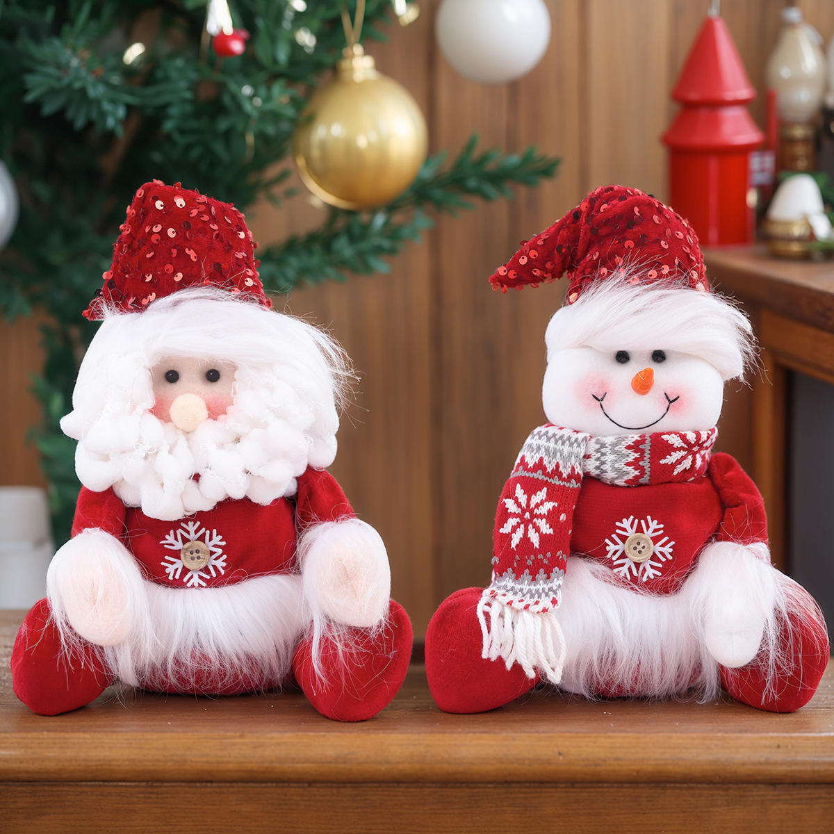 跨境圣诞节装饰用品圣诞老人雪人坐姿公仔创意娃娃礼物礼品摆件