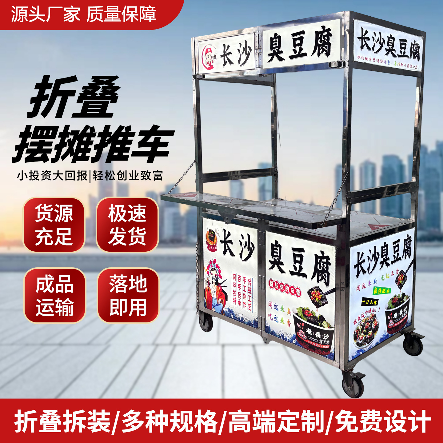 移动餐车夜市集市景区摆摊不锈钢材质网红烧烤奶茶水果捞手推餐车