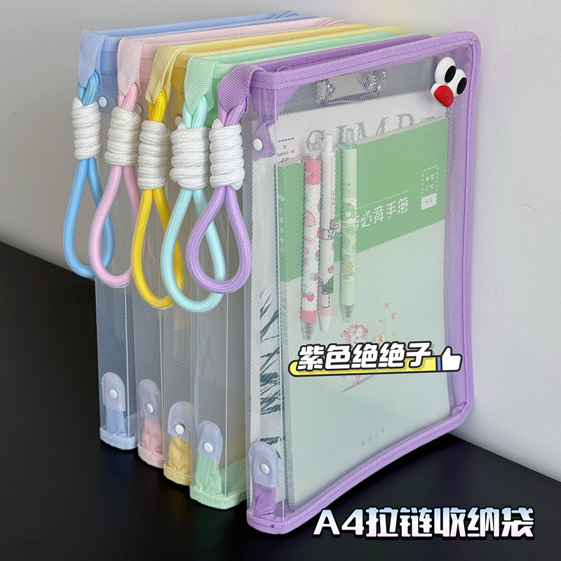 加厚手提袋pvc文件袋A4透明防水学生考试大容量补习试卷书本收纳