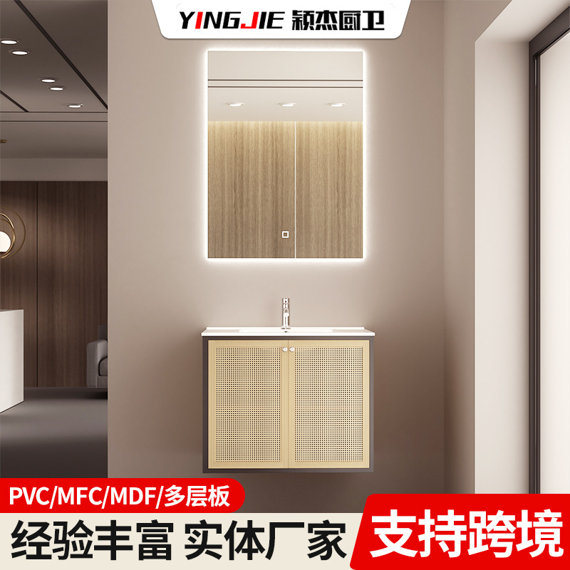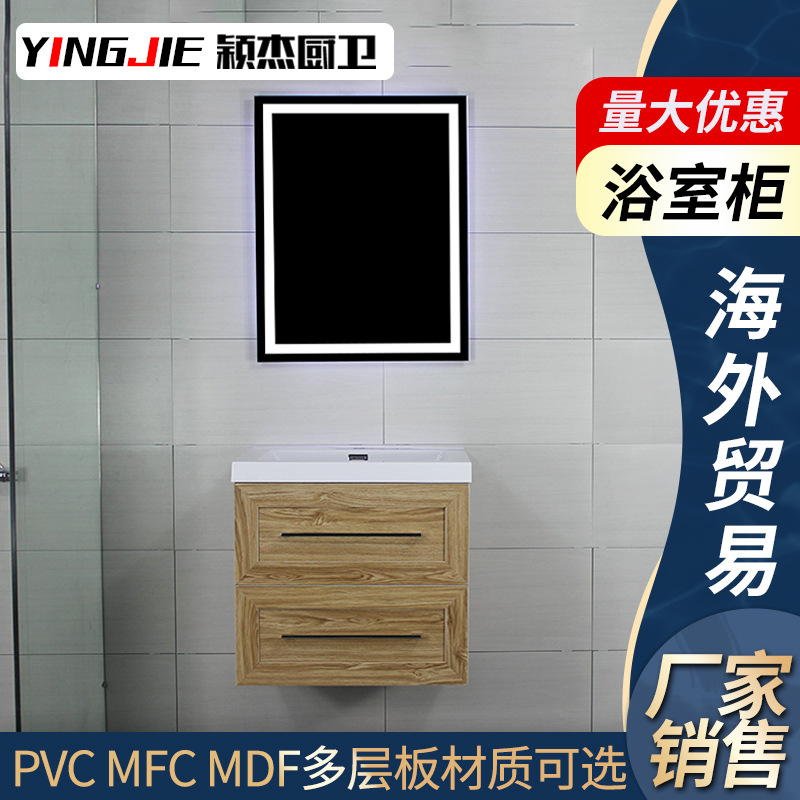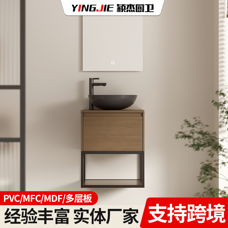 挂墙原木色浴室柜陶瓷一体盆浴室柜镜柜现代简约浴室柜组合浴室柜