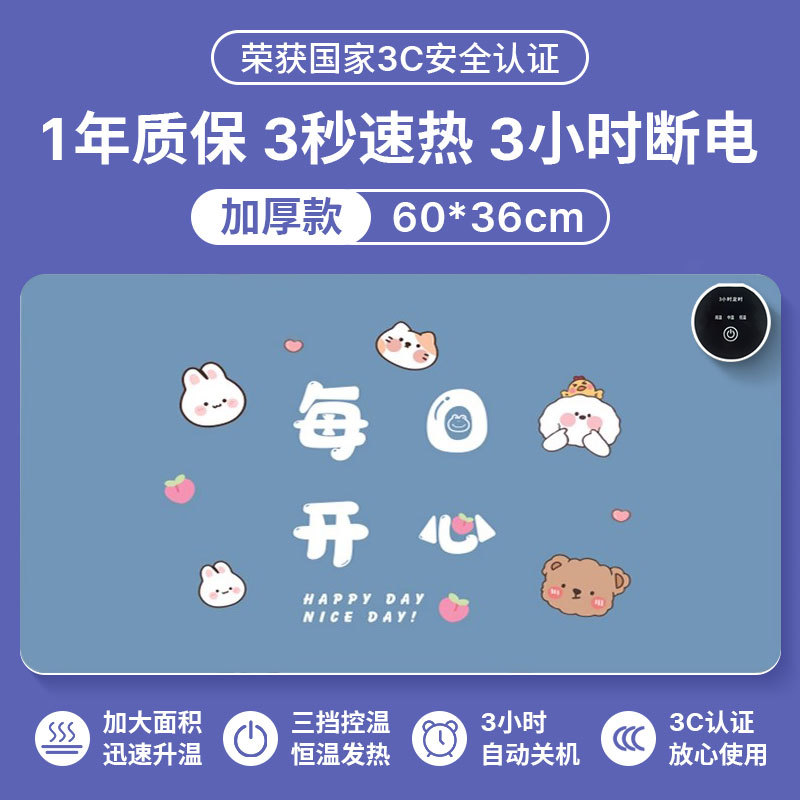 加热鼠标垫桌垫超大鼠标暖桌垫办公室加厚卡通文字家用发热桌垫