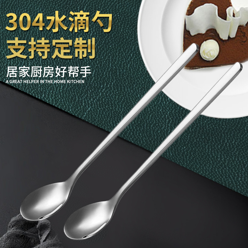 厂家供应304不锈钢水滴勺 长尾勺子调羹吃饭勺搅拌勺果酱