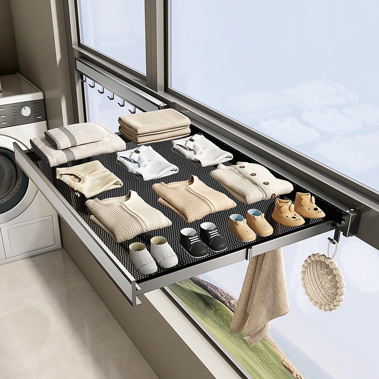 太空铝隐形折叠晾衣架阳台晒鞋架晾衣杆伸缩免打孔晾衣神器晒袜子