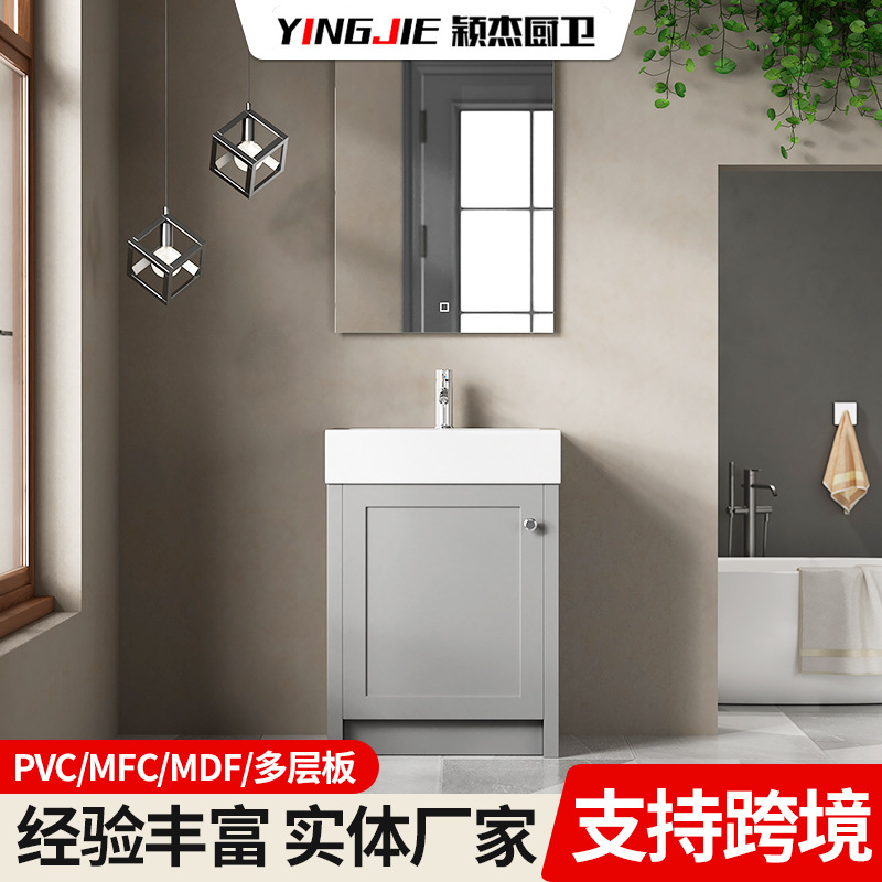 落地灰色系浴室柜陶瓷一体盆浴室柜镜柜现代简约浴室柜组合浴室柜