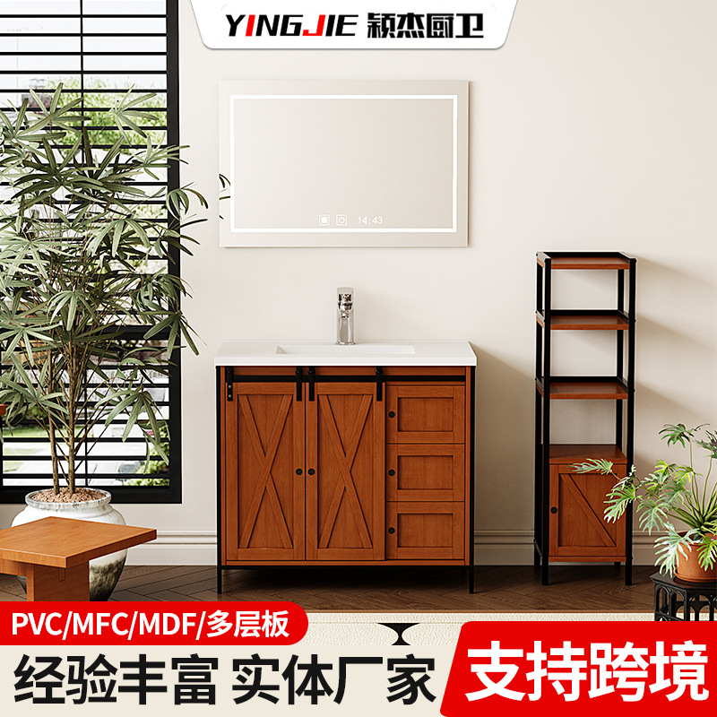 挂墙原木色浴室柜陶瓷一体盆浴室柜镜柜现代简约浴室柜组合浴室柜