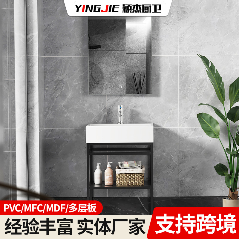 小户型阳台落地式洗手盆一体陶瓷盆家用浴室柜不锈钢置物架浴室柜