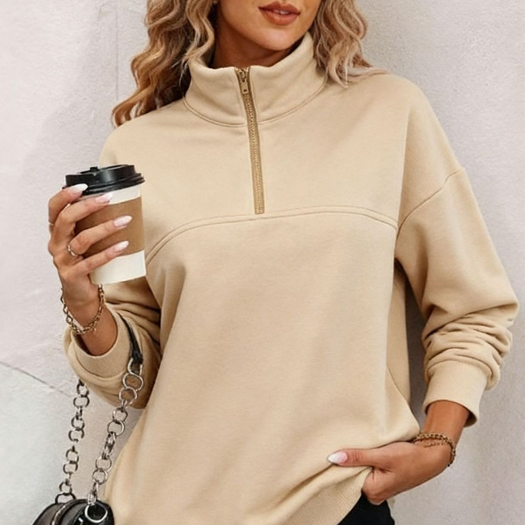 2025新款欧美跨境亚马逊翻领半拉链宽松卫衣女潮牌撞色长袖卫衣