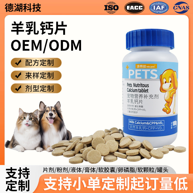 宠物强健骨骼乳钙片OEM贴牌代工猫狗保健品营养补充剂羊乳钙片批