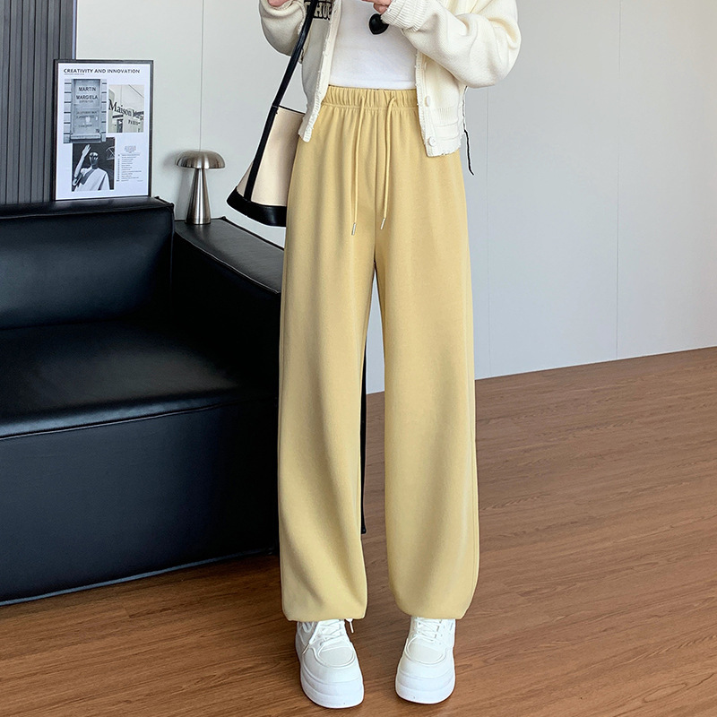 定制跨境新款女装秋季宽松慵懒高腰两穿阔腿裤女黄色休闲运动卫裤