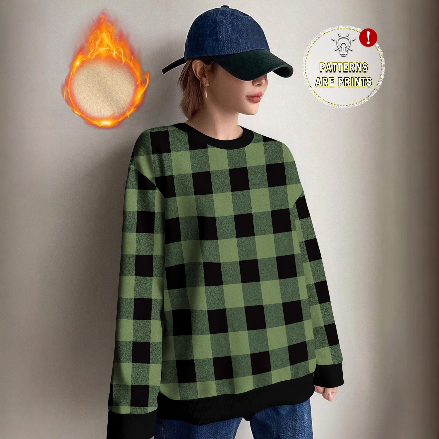 跨境欧美新款女装圆领卫衣格子印花图案休闲宽松卫衣女外套女秋